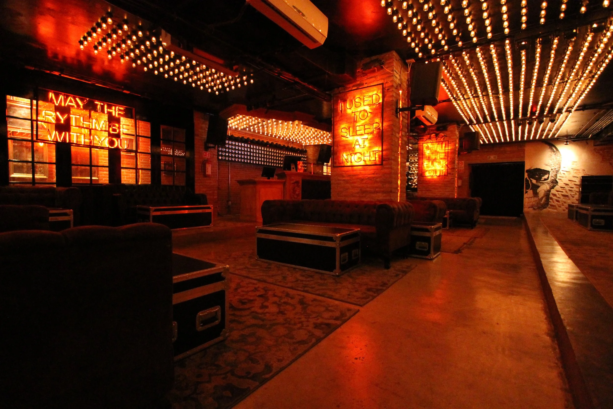 The design of this intimate space is inspired in the idea of an underground tavern during the alcohol prohibition period in the United States. Warm lights, eclectic decoration, and a low ceiling gave the space a mysterious and sensual vibe.